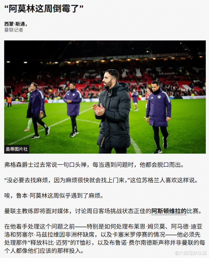 而本周球队增添了许多的问题,比如姆贝莫、迪亚洛以及马兹拉维因为非洲杯缺席,还有卡塞米罗的累计警告 停赛,梅努的争议、费尔南德斯提到的球队内部不努力的问题等等,这些让阿莫林焦头烂额。