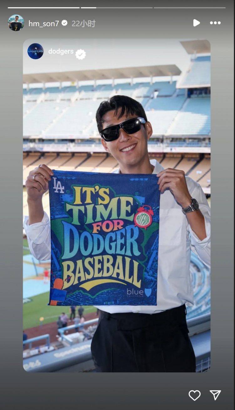 10月2日讯 洛杉矶FC前场球员孙兴慜更新社媒动态,晒出现场观看MLB(美职棒)季后赛的照片。