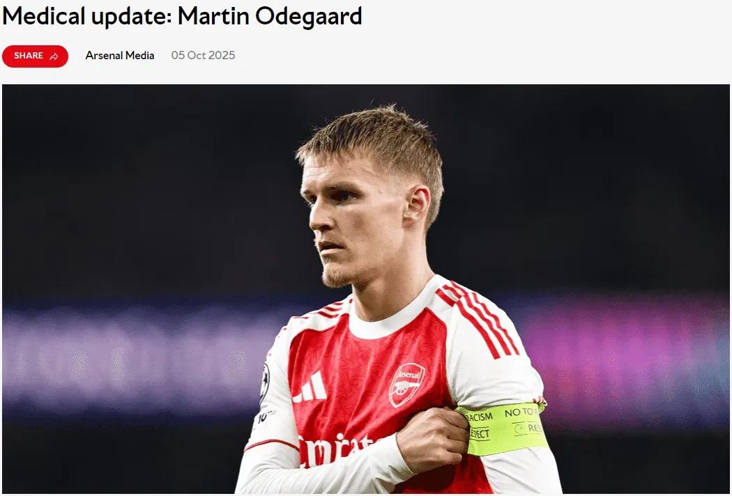 官方:阿森纳宣布厄德高在对西汉姆的赛事 中左膝内侧副韧带负伤 ,他将退赛本届挪威国家队,无缘对以色列和新西兰的赛事 。