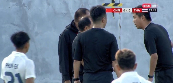 体育直播足球比赛 10月14日讯 U22国足vs泰国队下半场,泰国队替换队员 出状况,与裁判 沟通,中国队也过来调解。 ...