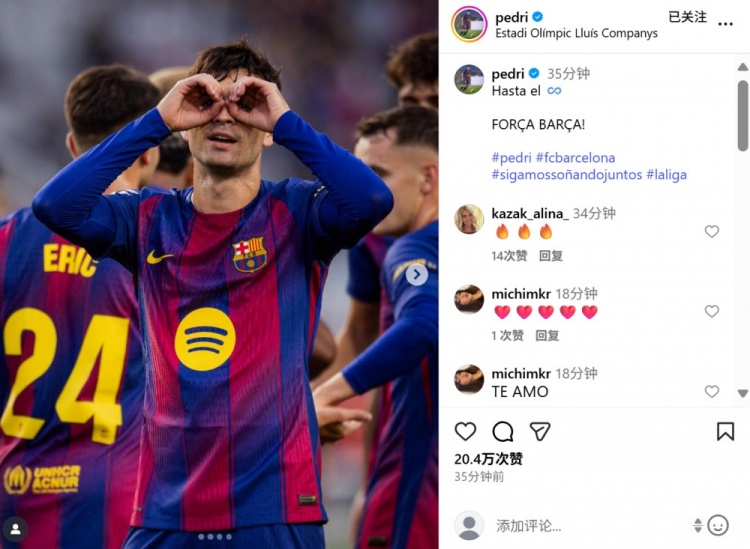 本场赛事 佩德里打进出色 得分 ,赛后他也在社媒晒出庆祝得分 照片,足球直播无插件免费在线观看配文写道:“直到最后,助威 巴萨!”