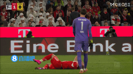 第33分钟,施洛特贝克大脚解围击中凯恩面部。↓