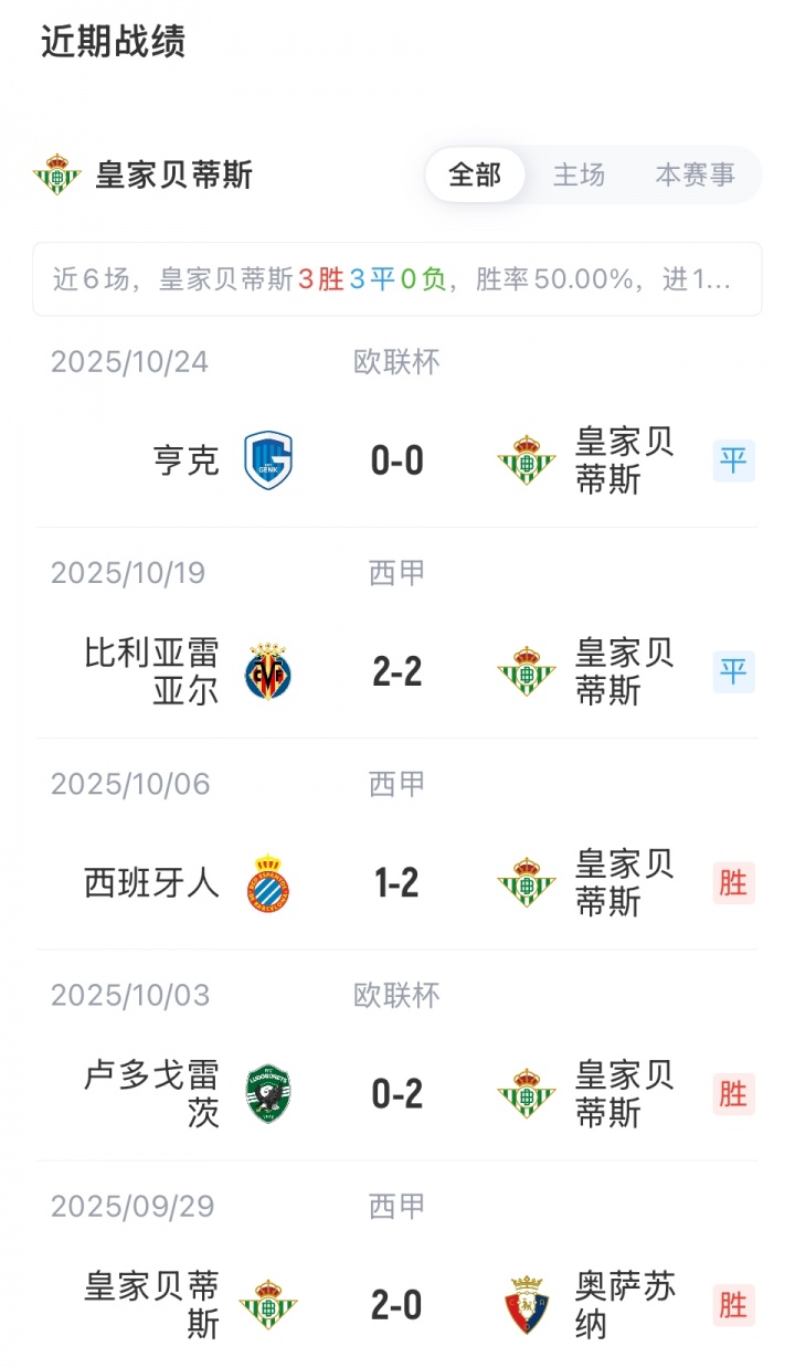 英超投注在线平台 10月28日讯 西甲第10轮,皇家贝蒂斯主场作战 迎战马德里竞赛 ,赛前杆位名单公布。【本场赛事 ,贝...